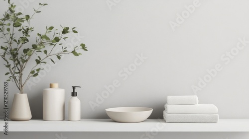 bathroom, white, shelf, bowl, interior, decor, modern, clean, design, room, home, wall, background, indoor, style, towel, contemporary, house, luxury, light, hygiene, mirror, space, bathe, elegant, shower, apartment, furniture, soap, spa, table, floor, wood, new, sink, beauty, empty, mock, lifestyle, stylish