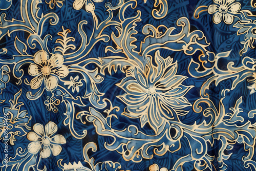 A batik texture background showcases elaborate, traditional dyeing techniques that create a dynamic, handcrafted effect with distinct, flowing patterns and a deep, textured appearance