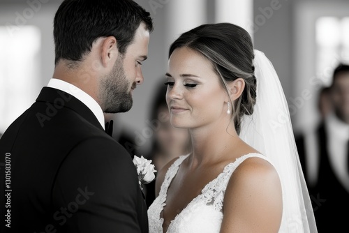 A beautiful bride gazes into her partner's eyes during an emotional exchange at their wedding, highlighting the deep bond and love they share.