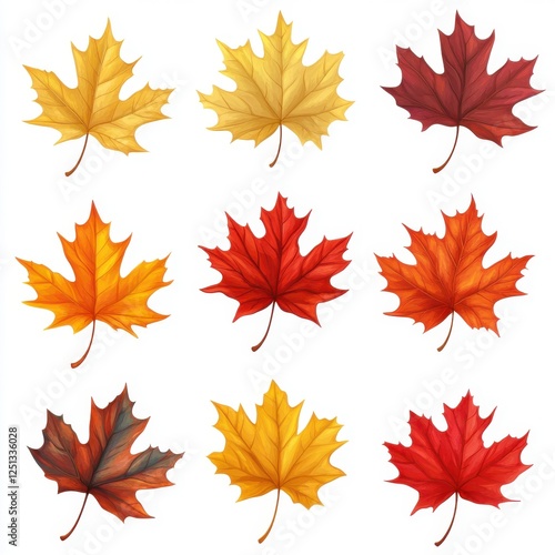 A Beautiful Display of Fall Maple Leaves in Various Colors and Textures, Showcasing the Richness of Autumn Nature, Perfect for Seasonal Designs and Backgrounds
