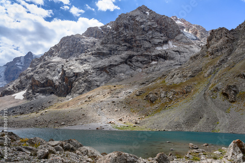 fan, lake, mountain, rock, tajikistan, nature, landscape, travel, water, beautiful, tour tourism, peak, background, view, forest, scenic, majestic, blue, autumn, summer, morning, natural, vale, sky, scenery, high, panoramic, vacation, tree, environment, sunrise