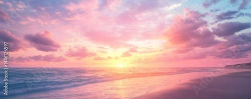 beach, sky, ocean, water, cloud, sunrise, sunset, horizon, wave, sand, coastal, dawn, dusk, serene, peaceful, tranquil, light, pink, orange, yellow, blue, colours, seascape, environment, nature, beautiful, scenic, atmosphere, shore, coastline, outdoors, calm, idylli, panorama, view, tropical, vacation, travel, gentle, huge, dreamy, glow, pastel, airy, aethereal, bright, sun