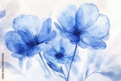 A beautiful painting of blue flowers against a clean white background