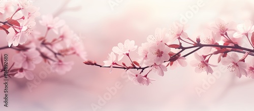 A beautiful springtime abstract background featuring a pink blossom tree and blooming spring flowers perfect for a copy space image