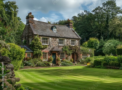 bungalow, countryside, stone, house, nature, tree, flower, garden