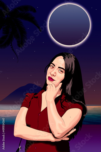 woman, beauty, fashion, face, hair, person, model, people, thinking, 1, black, lady, glamour, blond, studio, blond, posing, vector, body, cartoon