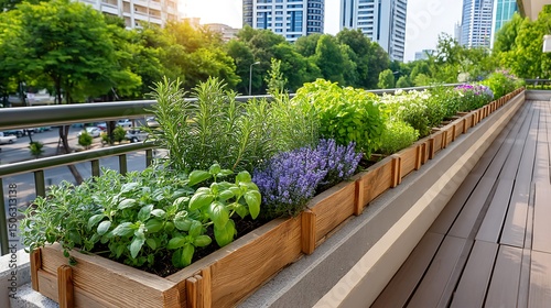 A Beautiful Urban Balcony Garden Featuring Fresh Herbs and Colorful Flowers in the City
