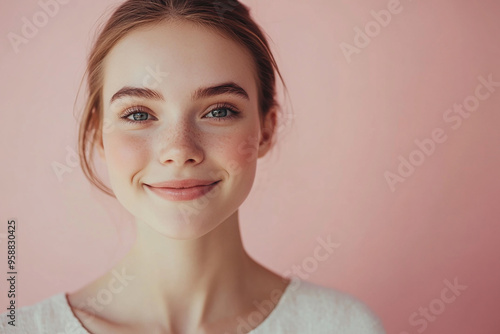 A beautiful woman close-up, facial skin care display