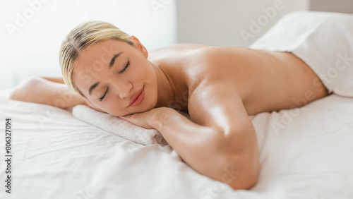 young, blond, woman, lady, massage, spa, beautiful, bed, laying, relaxing, calm, comfortable, bedchamber, home, indoor, attractive, resting, eyes closed, brunette, sheet, pillow, blanket, sleep, unwind, leisure, lifestyle, content, dreaming, room, horizontal, relaxation, beauty, portrait, fabric, furniture, interior, nap, quiet, daydreaming, mindfulness, comfort, elegance, reclining, alone