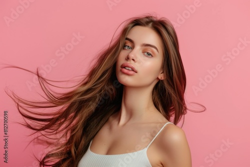 A beautiful young woman with long brown hair. Suitable for a variety of projects