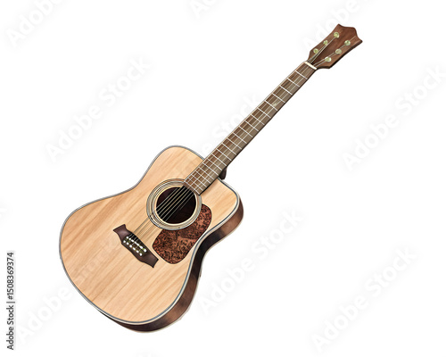 A beautifully crafted acoustic guitar placed amidst lush floral surroundings, isolated on a white background
