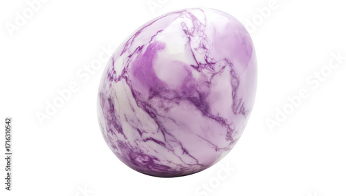 A beautifully crafted purple marble egg with intricate swirling patterns. displayed against a clean white background. ideal for decorative purposes or artistic showcases