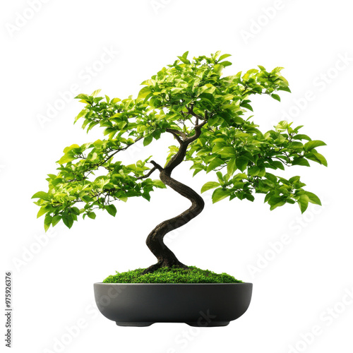 A beautifully designed bonsai tree in a sleek pot, showcasing intricate branches and vibrant green leaves. Perfect for nature lovers.