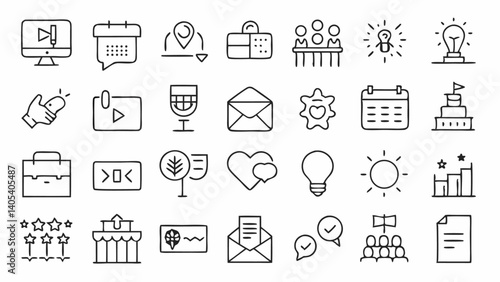 A beautifully designed pack of outline icons for event planning, great for creating brochures, apps, websites, and guides tailored to organized celebrations and events