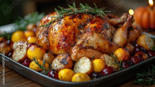 chicken, roast, dinner, food, herb, rosemary, potato, cranberry, festive, meal, cooking, cookery, platter, garnish, autumn, holiday, celebration, table, savoury, delicious, feast, preparation, ingredient, warmth, family, sharing, gathering, favor, aroma, texture, seasonal, rustic, epicure, appetising, presentation, culinary, receipe, tradition, comfort, eating, hospitality, enjoyment, colours, freshness, organic, wholesome, dining, succulent