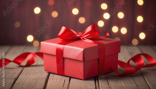gift, present, red, box, ribbon, bow, christmas, holiday, celebration, surprise, wooden, surface, bokeh, light, wrapped, package, festive, elegant, luxury, giving, decoration, wood, texture, background, ornament, celebratory, season, greeting, happy, joy, love, special, occasion, gift box, tied, shiny, celebrate, classic, design, style, beautiful, romantic, warm, soft, sharpened, blur, closeup, detail