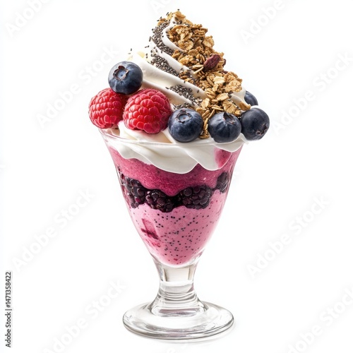 A berry fusion frozen yogurt, featuring a blend of raspberry, blueberry, and strawberry frozen yogurt,