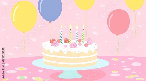 birthday, cake, candle, top, white, plate, balloon, celebrate, different, yellow, party, blue, colours, including, sweet, happy, dessert, food, icing, event, background, festive, holiday, decorated, fun, pink, frosting, baked, flames, fire, nobody, object, illustration, ribbon, confection, surprise, cream, anniversary, confetti, design, vector, sprinkle, bright, red, jubilee, bakery, burning, joy, space