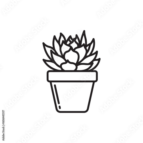 a black and white line drawing of a succulent or flowering plant with intricate, overlapping petals or leaves. The overall shape resembles a rosette or spiral pattern, creating a visually striking