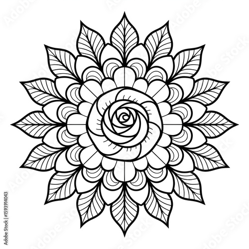 flower, vector, floral, design, pattern, illustration, nature, leaf, decoration, art, plant, summer, ornament, sun, flower, element, colours, decor, flora, tattoo, spring, sunflower, drawing, blossom, page, colourful, graphic, outline, print, book, colouring, crayons, doodle, frame, hand-drawn, mandala, vignetting, black-and-white, cartoon, rose, white, adult, black, blooming