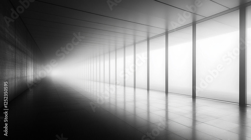 A black and white photo of a modern building with strong lines conveys order and complexity Bright tones contrast with blurred elements Symbolizes structure chaos duality space and urban minimalism