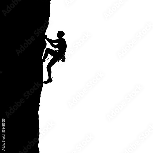 a black and white silhouette of a climber climbing a steep cliff black, cliff, climb, climber, hang, man, rock, rock climber, silhouette, steep , Generative art.