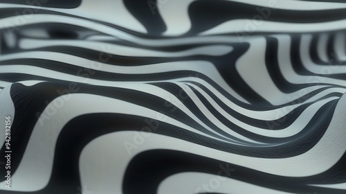 A black and white striped fabric with a wave pattern. The stripes are very close together and the fabric appears to be very thin