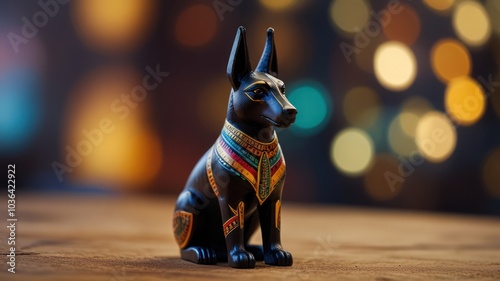 anubis, egyptian, statue, god, mythology, ancient, culture, history, symbol, religion, death, afterlife, spiritual, mystical, supernatural, occult, magic, dark, black, gold, blue, wooden, surface, bokeh, light, background, abstract, vintage, decor, art, object, figurine, craft, hand-made, souvenir, collectable, antique, tradition, belief, faith, folklore, legend, story, icon, graphic, design