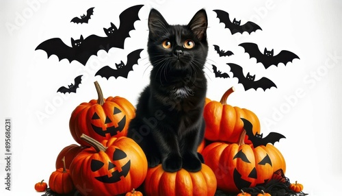 halloween, black cat, pumpkin, bat, skittish, cute, felino, pet, orange, celebration, festive, whimsical, playful, white background, pumpkin, cat, autumn, black, vector, holiday, illustration, scarey, horror, cartoon, october, bat, animal, decoration, sorcerer, lantern, ghost, jack, dark, face, fall