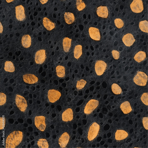 a black panther skin print, as well as the texture of the fur and the contrasts between black and caramel of its spots
