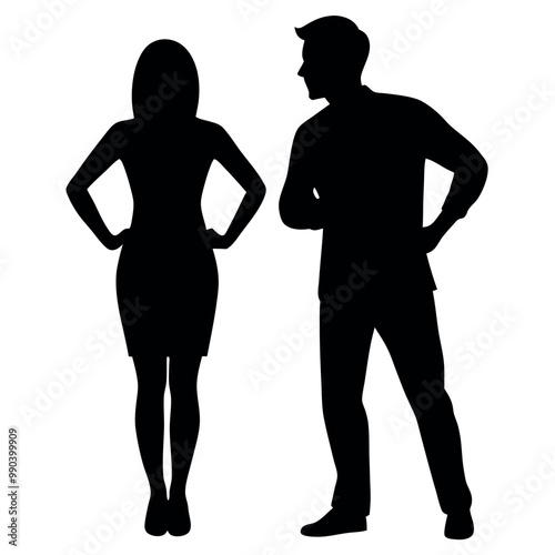 a black silhouette of a man and a woman. The man is on the right side of the image and is facing the woman on the left side