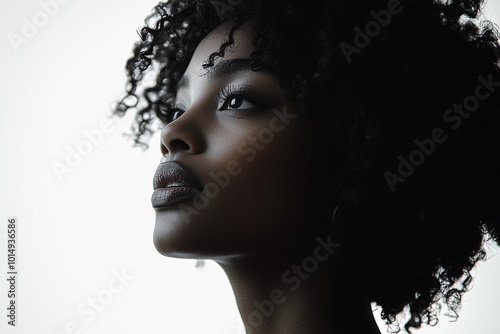 black, silhouette, african, american, standing, hair, curly, woman, white, background, figure, centered, posture, graceful, profile, beauty, fashion, glamour, make-up, face, model, coiffure, person, people, lip, skin, brunette, lady, studio, dark, head, eye, 1, elegance, style, female, design, girl, portrait, modern, symbol, afro, minimalism