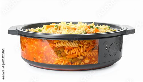 black, slow, cooker, transparent, side, panel, filled, pasta, sauce, white, background, serving, technology, electricity, appliance, thermal, hearty, savoury, healthy, brunch, italian, receipe, nourishment, electric, container, culinary, lunch, vegan, kitchen, food, ingredient, dinner, meal, european, vegetarian, snack, cooking, dish, tasty, homemade, breakfast, cookery, delicious