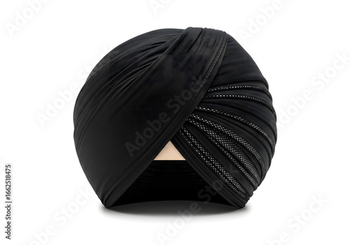 black, turban, headwear, clothes, fabric, textile, wrapped, folded, pleated, textured, detailed, ornate, decorative, embellishment, accessory, fashion, style, traditional, cultural, religious, garment, apparel, clothing, attire, ceremonial, formal, elegant, sophisticated, rich, luxurious, masculine, unisex, ethnic, identity, heritage, symbol, spiritual, devotion, faith, belief, worship, prayer, meditation, ritual, ceremony, celebration, festival, occasion