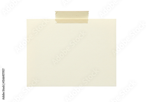 A blank creamcolored note is attached with beige adhesive tape isolated on transparent background