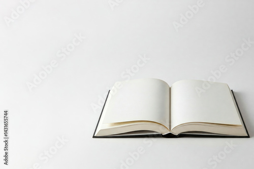 A blank open book on a clean background. Space for text.