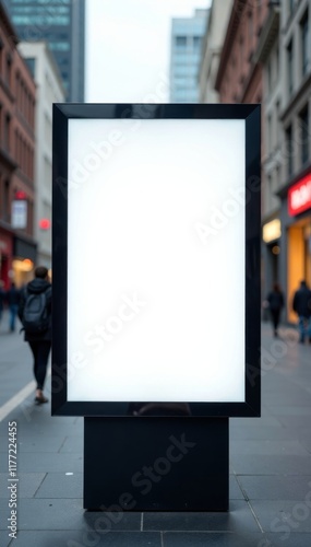 A blank street billboard poster stand in a city business district background with empty frames, background, emptiness, poster