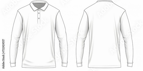 A blank template of a men's long sleeved polo shirt, suitable for customization. Ideal for fashion design projects or creating mock-ups for clothing brands