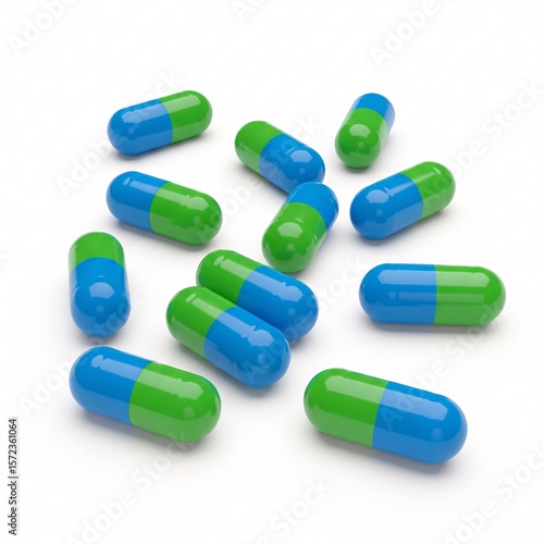 capsule, pill, medicine, pharmaceutical, health, supplement, isolated, white background, studio shot, closeup, medicals, drug, treatment, health care, blue, green, capsule, pill, medication, wellness