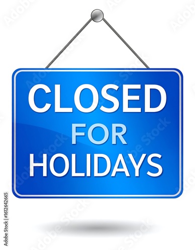 closed, holiday, signs, blue, hanging, square, text, white, holiday, break, vacation, business, shop, store, office, message, notice, information, announcement
