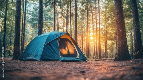 tent, camping, forest, tree, sunset, nature, outdoors, wilderness, travel, adventure, vacation, holiday, relaxation, leisure, escape, tranquil, serene, peaceful, quiet, solitude, exploration, discovery, journey, wanderlust, wood, woodman, backpacker, hiker, campground, campfire, night, starry, dark, shadow, light, glow, golden hour, sunrise, morning, dawn, dusk, evening, summer, fall, autumn, spring