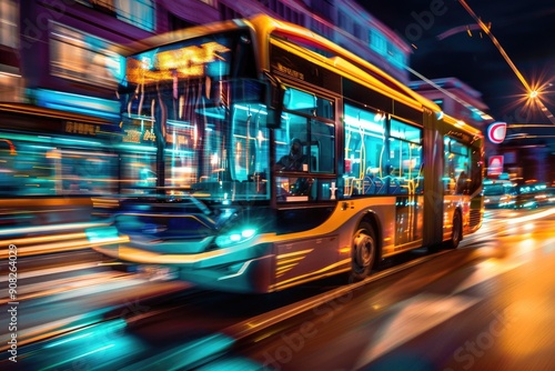 A blurry image of a bus on a city street, suitable for urban or transportation-themed contexts