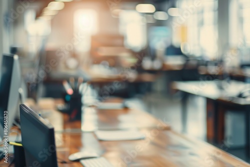 A blurry image of a room with a desk and a computer