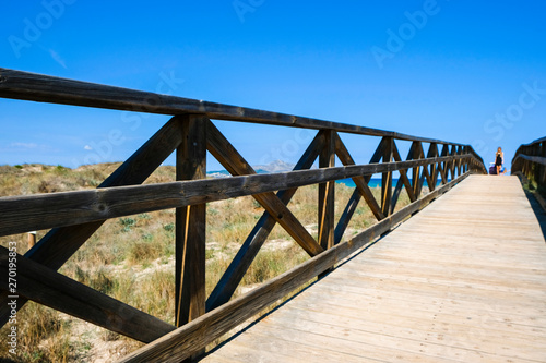 A boardwalk to Playa de Muro beach in Can Picafort, Alcudia bay, Majorca, Mallorca Island, Spain