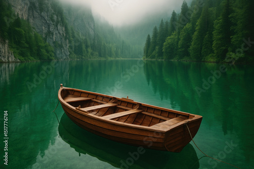 boat, lake, water, serene, peaceful, nature, tranquil, floating, isolated, solitude, calm, scenic, beauty, outdoors, recreation, leisure, adventure, voyage, journey, sail, nautical, aquatic, idylli, picturesque, marin, reflections, stillness, rippling, wooden, rowing, skiff, oar, misty, mist, fog, morning, daybreak, early
