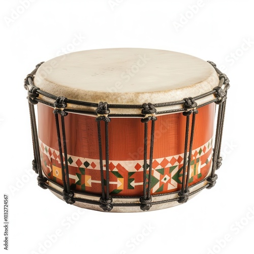 A bodhran clipart, Irish drum element, traditional patterns, isolated on white background