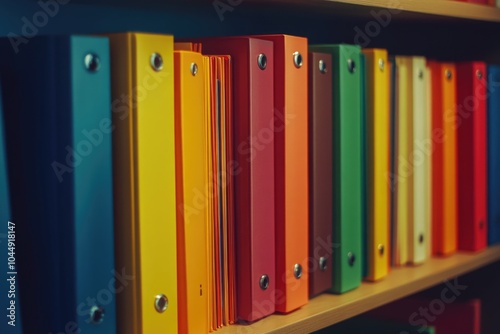 bookshelf, binder, colourful, book, storage, office, study, library, learning, education, classroom, teacher, student, resource, material, supply