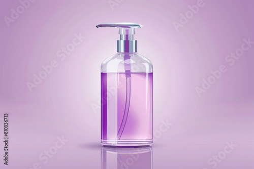 A bottle of liquid with a pump on a purple background. Ideal for beauty product concepts
