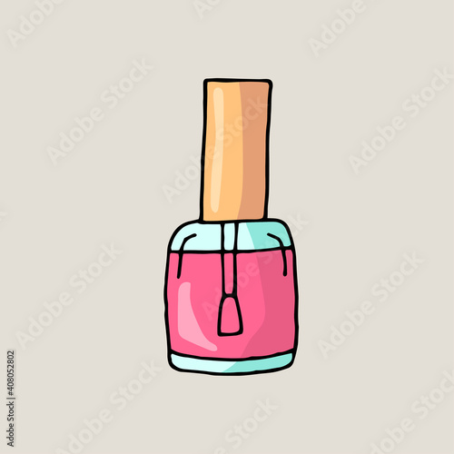 A bottle of nail polish. Manicure. Pedicure. Nail care. Vector hand-drawn doodle illustration.