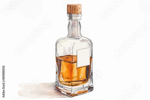 A bottle of scotch whiskey rendered in soft watercolor hues, isolate on white background